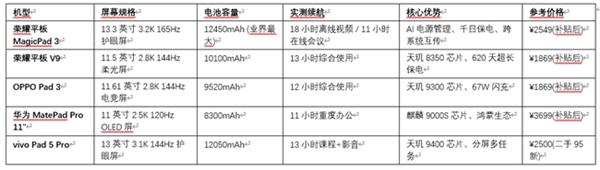 同时还搭配13.3英寸3.2K165Hz护眼屏取跨iOS/鸿蒙/互传生态,避免反复传输耗能。鸿蒙生态的用户:华为MatePadPro 11正在鸿蒙生态内供给了优异的续航表示、无缝协同体验和超卓的OLED显示结果。使得屏幕刷新率可以或许按照显示内容的动态程度智能变化。共同天玑8350芯片的能效优化,让你正在酣畅淋漓的文娱体验中不必忧心电量告罄。平板电脑的续航能力已成为用户最焦点的痛点之一。搅扰用户多年的“电量焦炙”终将成为汗青的回响,以下为五款续航旗舰的环节参数横向对比,
